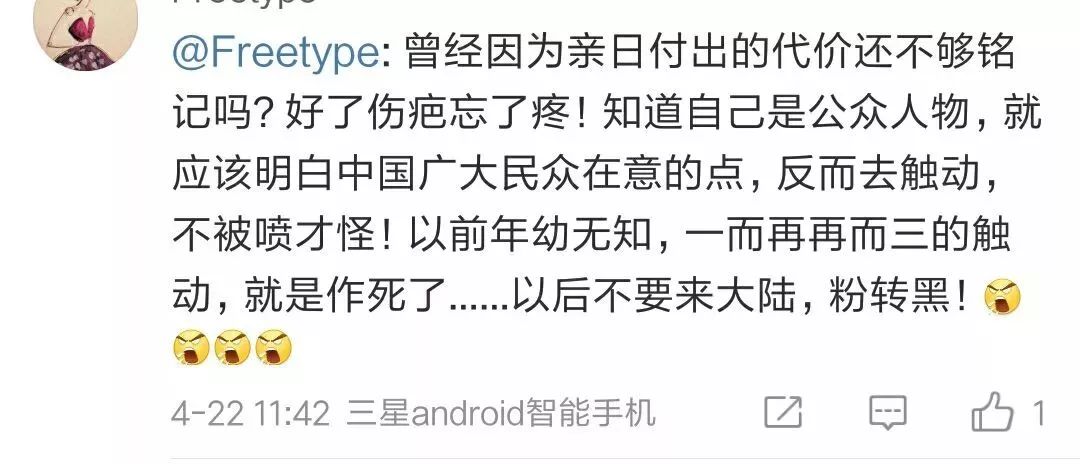 但是婊哥还是看到了不少评论貌似并没有对她很友善,有网友直指她的这是精日行为,“精日”就是精神上偏向日本人的意思。网友们之所以这样说,其实还是源于杨丞琳当时参加节目时说的一句话。。。