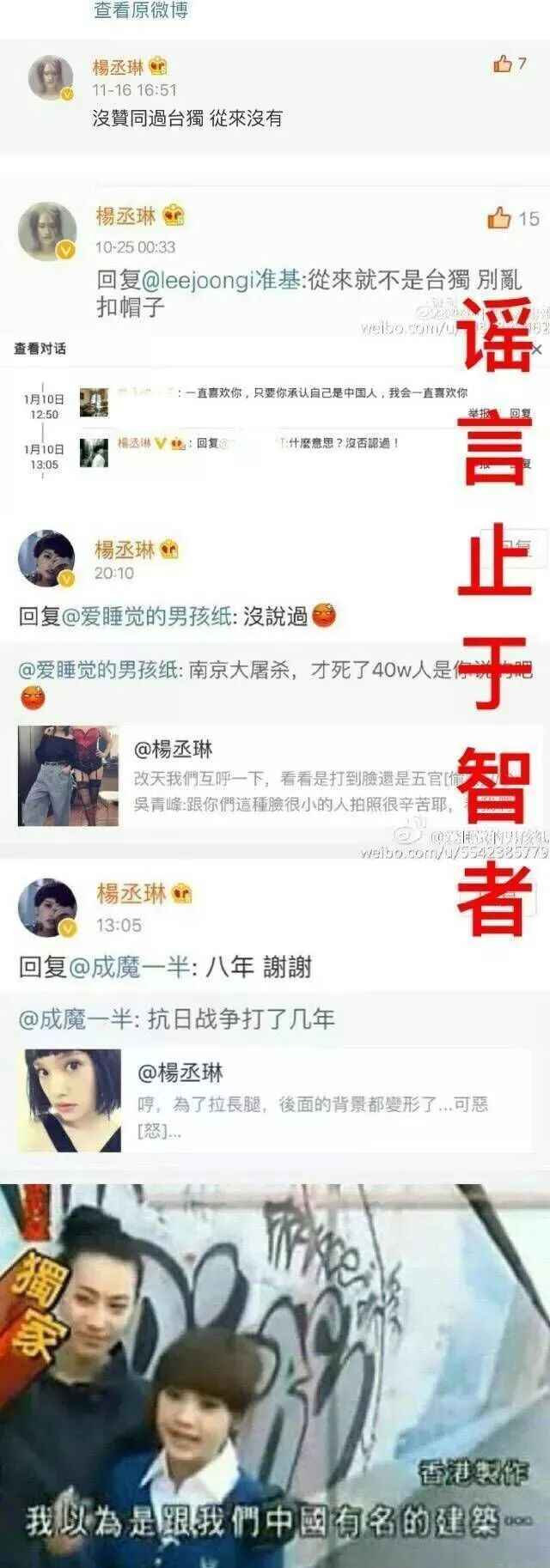 但是有网友将这个问题添油加醋,甚至捏造出杨丞琳“谈及南京大屠杀说才死30万人”、“歌颂日本”等本不存在的情节,上升至td、精日、辱华的程度,这就有些过分了!