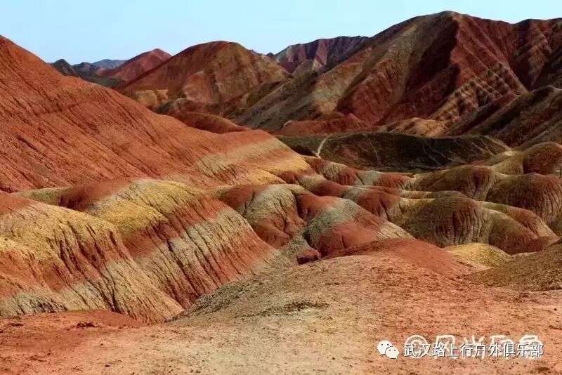 约上午10点集合登车,告别天下第一雄关,约下午1点半到达甘肃“河西走廊”张掖临泽 游览“中国最美的七大丹霞”之— 200万年前侏罗纪时期形成的【五彩丹霞地貌风景区】 欣赏方圆百平方山地丘陵地带,层错交替、岩壁陡峭、气势磅礴、造型奇特、色彩斑斓的丹霞地貌。有七彩霞、七彩塔、七彩屏、七彩练、七彩湖、火海、刀山、大扇贝、彩色丘陵等多处奇观。