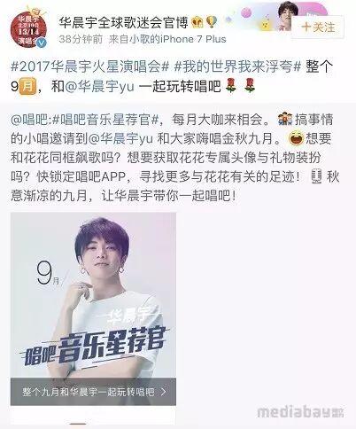 音乐社交泛娱乐平台——唱吧从9月开始每月都将力邀一位重量级大咖艺人成为唱吧月度推荐大使,与大家一起边唱边玩,乐享好音乐。新生代歌手华晨宇,正是此次活动的首位当月“音乐星荐官”。