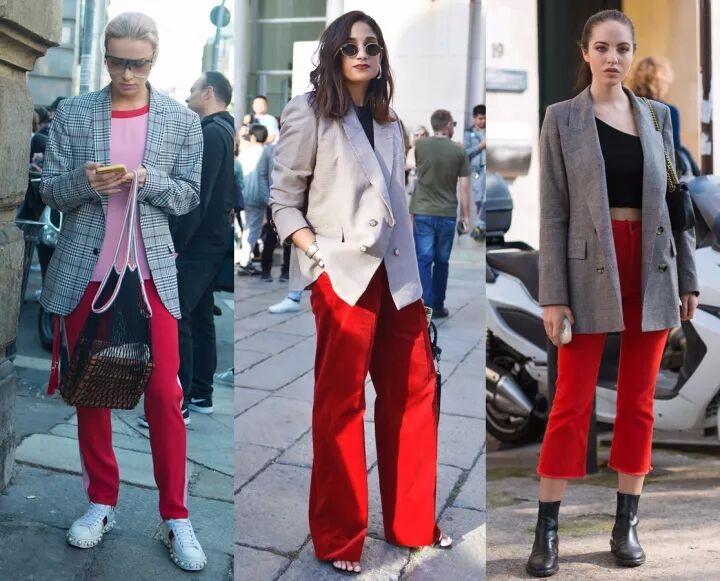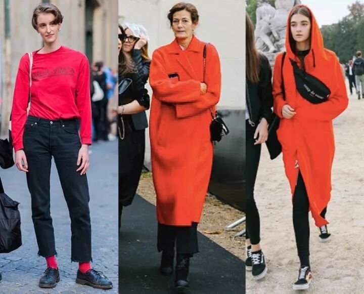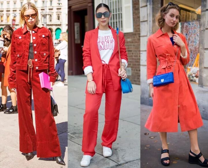 红色亮眼又提气,尤其拍照的时候能够成为镜头的焦点,所以2018春夏时装周街拍中,达人博主们也迷上了全红Look。