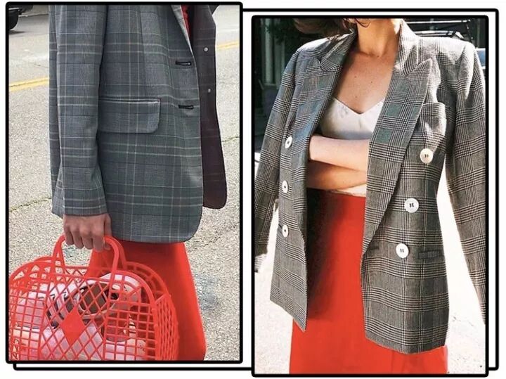 但因为格纹、红色都比较显眼,所以其他单品尽量选择简单、基础的款式,以避免风格混乱哦~