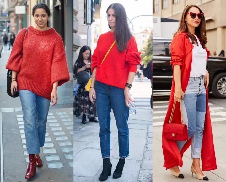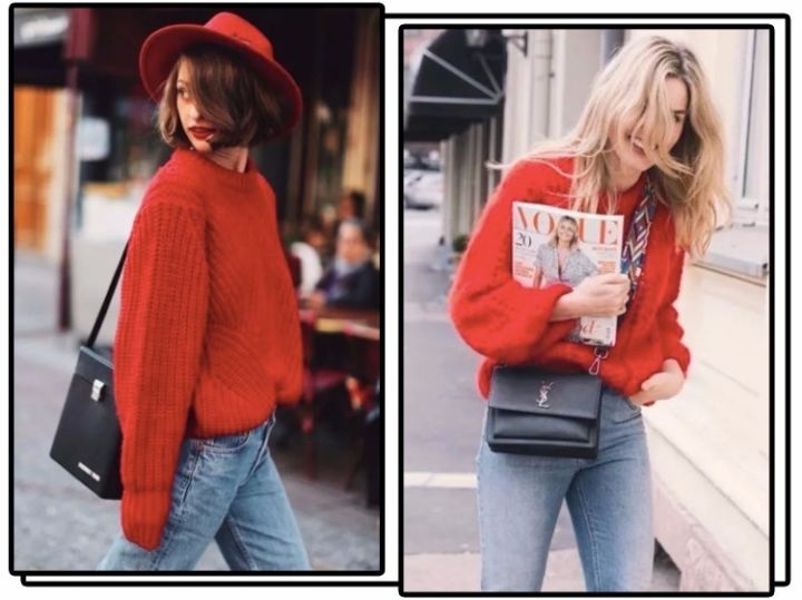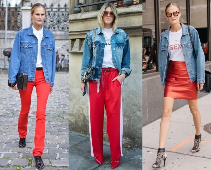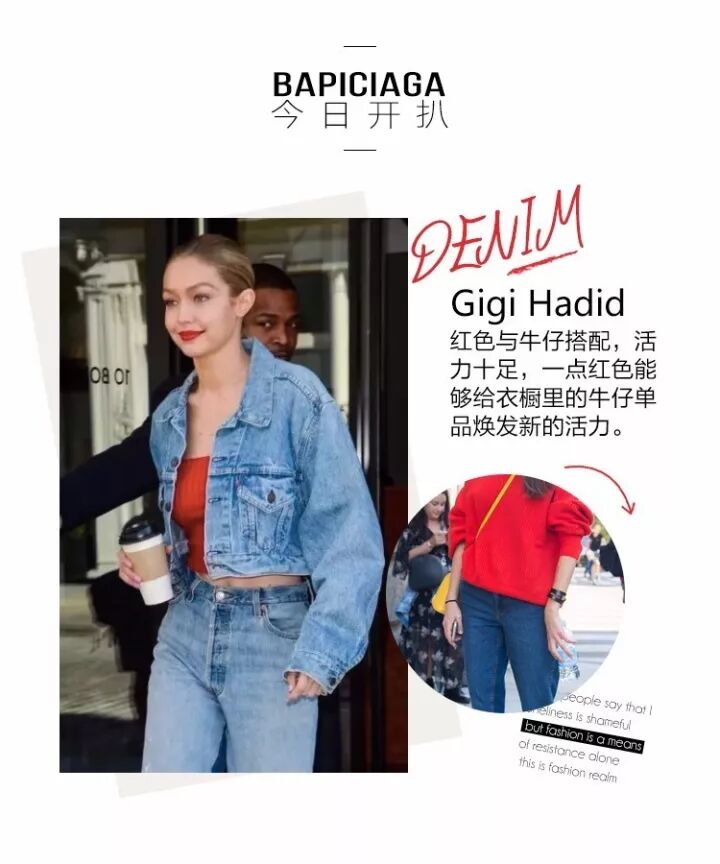 红色与牛仔蓝搭配同样不会出错,而且相比较与黑色的搭配,与牛仔蓝搭配看起来会更清新,黄皮的妹子也不用担心显得暗沉。