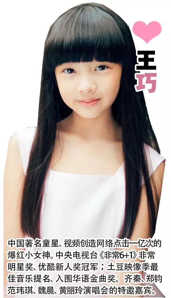 年仅9岁的网红萝莉王巧, 2013年便夺得了中央电视台最具含金量的《非常6+1》“非常明星奖”从而首次进入大众的视野,其后,也更是勇获中央电视台《等你长大》最佳表演奖、优酷UGC新人奖等众多重要奖项,更是凭借其首张原唱EP大碟《美得冒泡》被提名“华语金曲奖”,2015年更是在中国儿歌盛典上华丽绽放,获得了唯一一个童星个人单项奖的“童声新动力大奖”,得到了王菲御用音乐人张亚东等乐坛前辈的力挺。