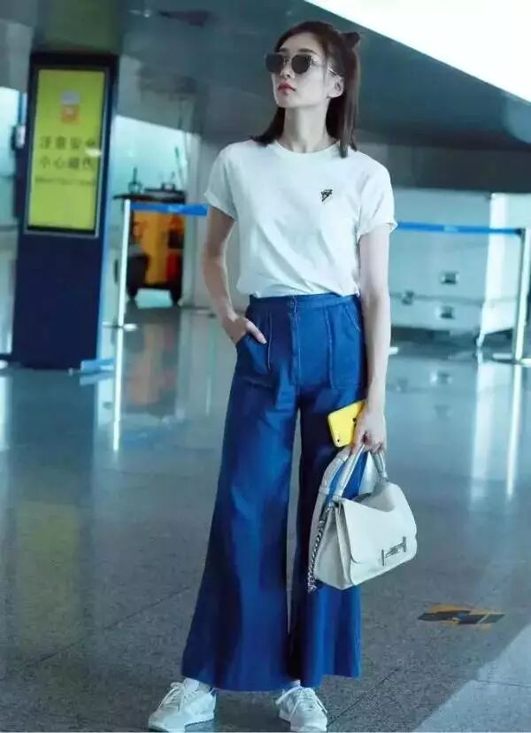 小白T+牛仔喇叭裤+小白鞋的标配,毕竟无论时间过了多久,这一身都简约又好看!