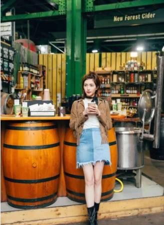 想要时尚先露美腿,小白T搭配牛仔裙,外搭麂皮流苏外套,重点是脖子上的黑色小丝巾和发型加分,帅气优雅又时髦!