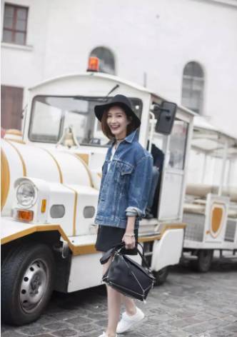 牛仔外套怎么穿才好看?内搭小白T加黑色短裙,适合旅行的一身。歪个楼,惊叹这小白鞋和小白T的利用率也太高了吧!