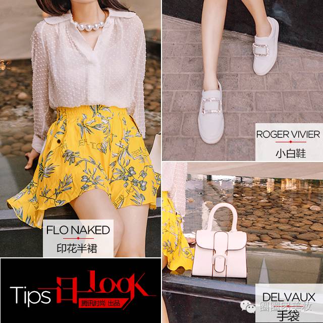 造型解析:白衬衫、印花半裙 均来自Flo Naked;小白鞋/Roger Vivier;手袋/Delvaux;项链/Kenneth Jay Lanefrom On Pedder