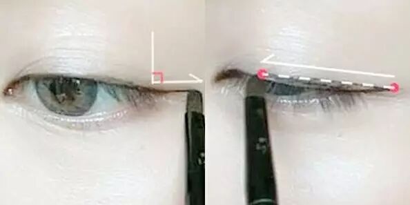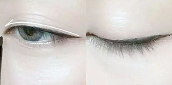 Step2:再从第一步开始的位置逆向眼头方向,描出细细眼线;