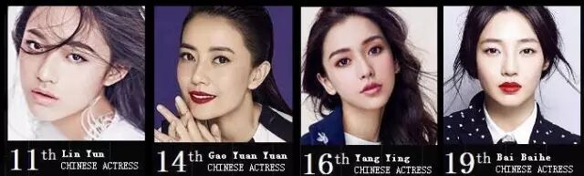林允、高圆圆、杨颖、白百何也全部全部挺进前20