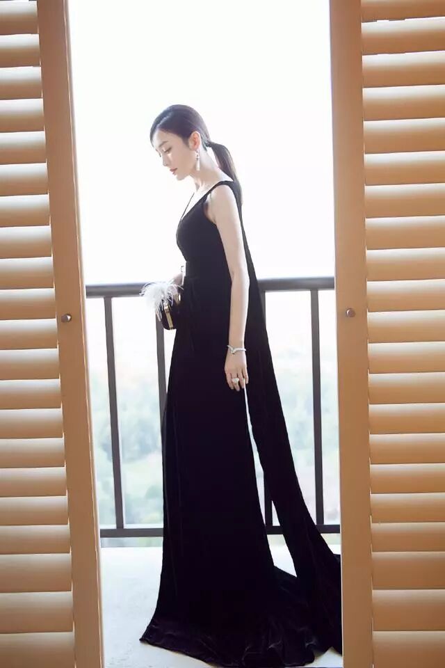 只见她扎着利落又大气的高扎发髻,很是精致。浅蓝色的一袭晚宴裙非常瞩目,特别是淡蓝色加上高贵典雅的设计让大喵真是一瞬间爱上了她~不规则的亮片点缀在一边,既炫耀夺目又把她的肌肤烘托得更白净。而吊带的造型则突出了性感的锁骨与美丽的肩部。
