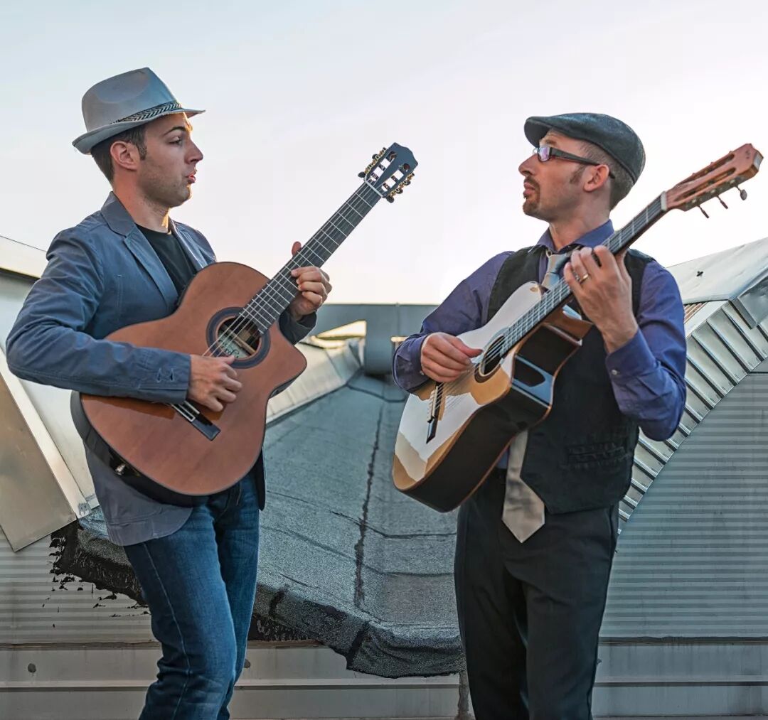 欧亨尼奥·布拉戚尼来自传统的古典吉他世界、马特奥·米诺利齐则更多专攻现代吉他,两位音乐家都对爵士乐极为喜爱,在演奏传统爵士曲目之外,他们也改编许多耳熟能详的电影音乐。
