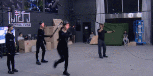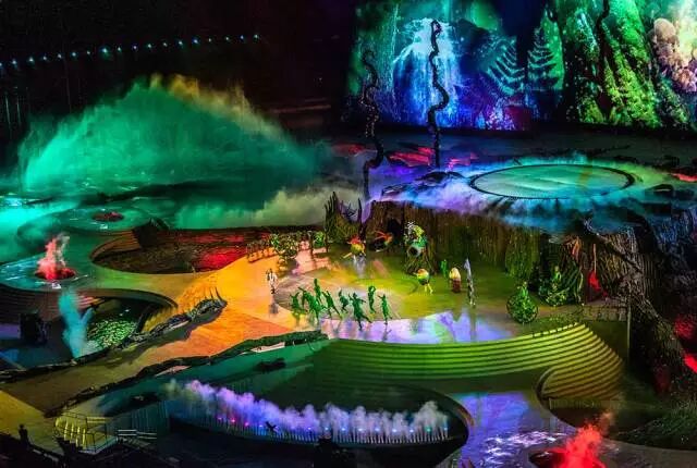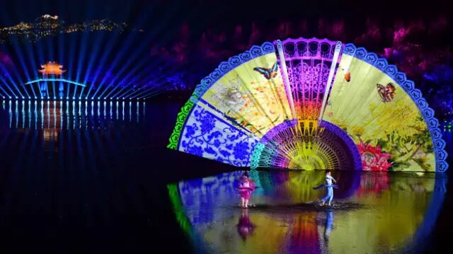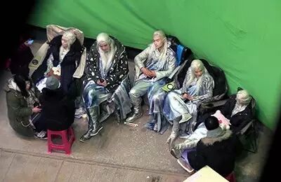 穿着精灵装的舞蹈演员边飞往下扔红包
