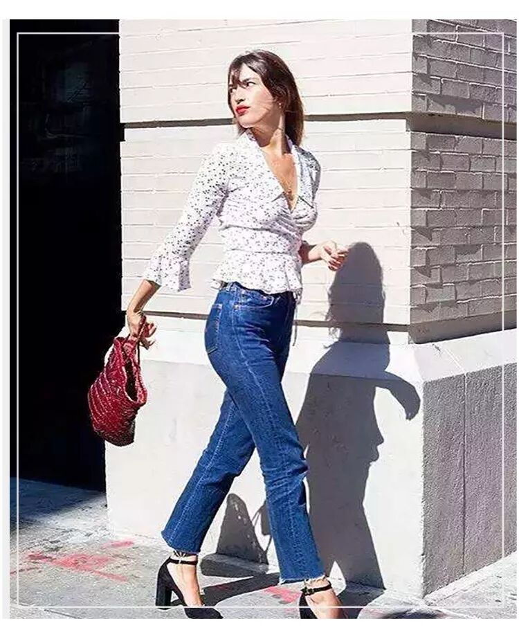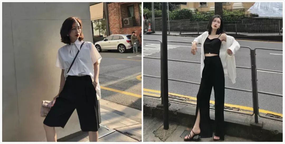 如果你担心这样穿会太过于寡淡,那么可以找一些带有设计感的基本款,比如白衬衫的领口带有特别设计,或是带有开叉设计的阔腿裤,就能让你的时髦度大大提升。