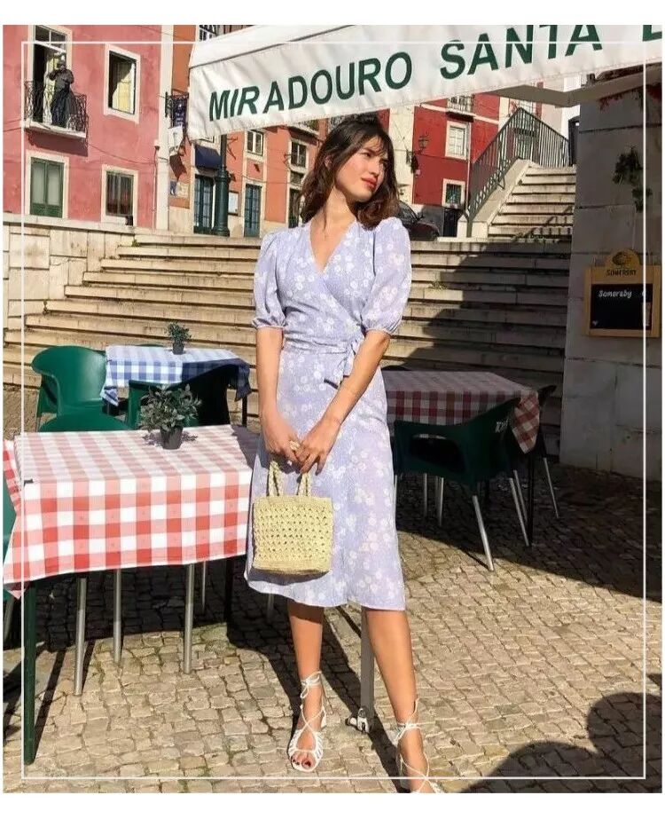 提起法式风格,大家可能第一时间想到的就是各类复古的碎花连衣裙,V领的设计非常适合大胸女孩,没有什么搭配的烦恼,一条裙子就已经像一副浓墨重彩的画。