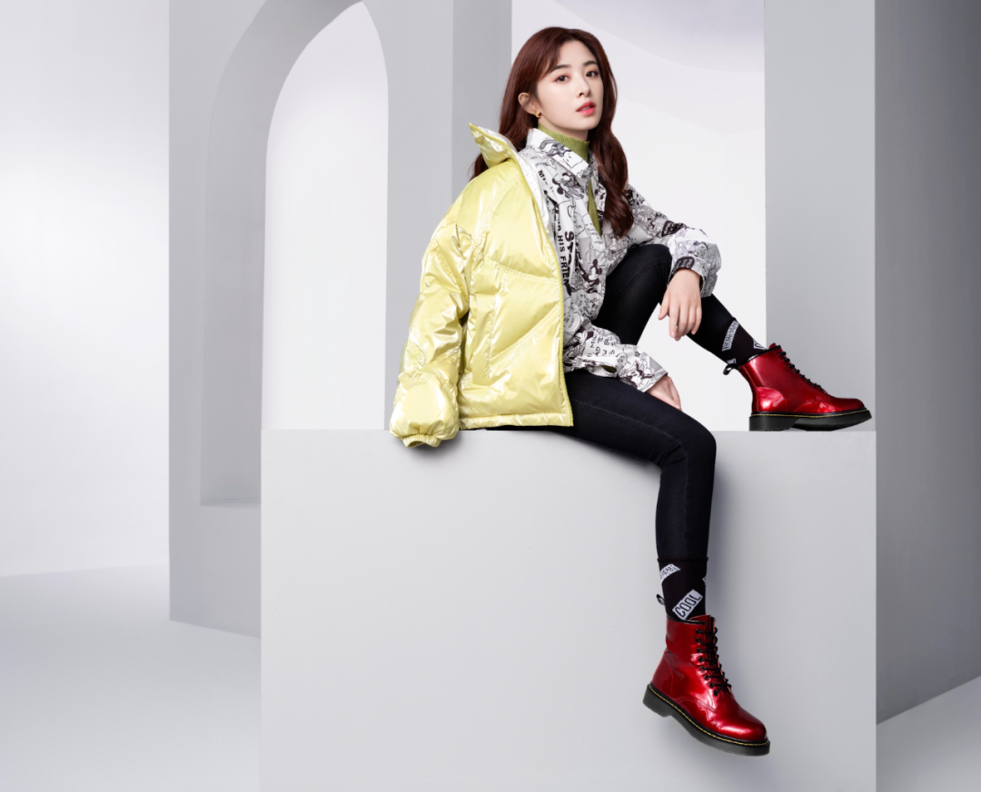亮面马丁靴别出心裁,传递个性十足的倔强态度。