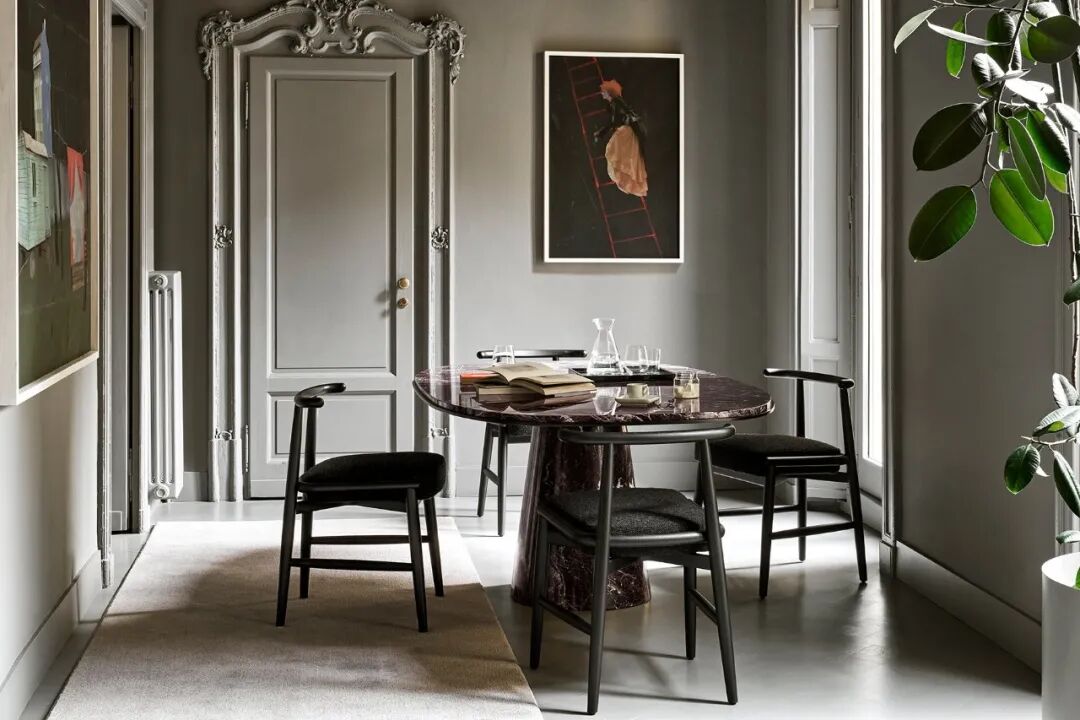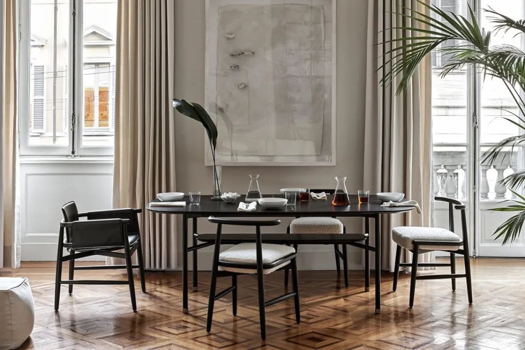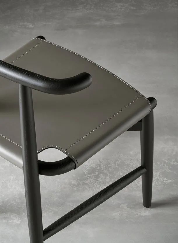For Emilia, there are two different seating options, an upholstered version with a textile or leather cover;