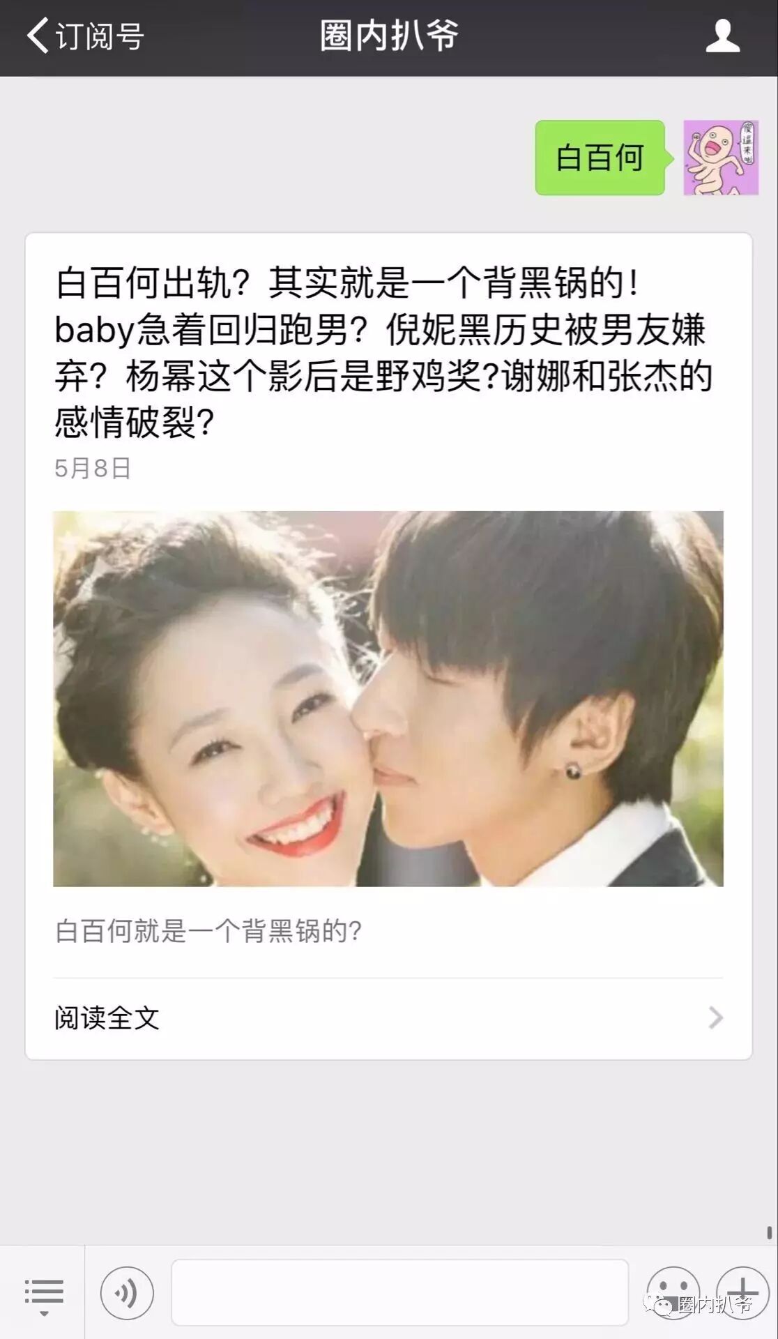心动的小婊贝们,赶快扫描二维码关注圈内扒爷,微信对话框回复关键词“白百何”,即可查看扒爷为大家准备的详细爆料。