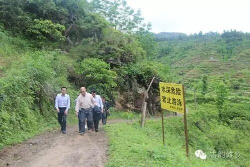 陈晓新(右一)查看地质灾害点警示牌