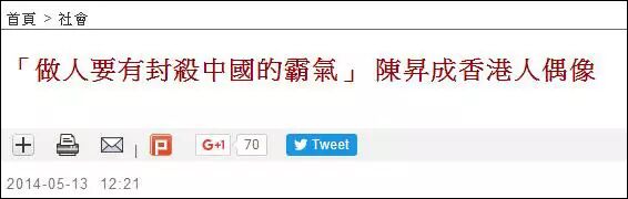 《自由时报》还称陈升已经成为香港人的偶像,赞陈升是“真正勇敢的台湾人,用钱买不到浩气长存”。