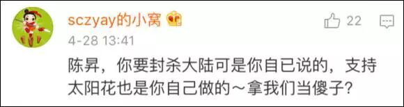 一部分网友表示,虽然陈升否认自己是“台独”,但当初反服贸、歧视大陆的言论我们都还记得。
