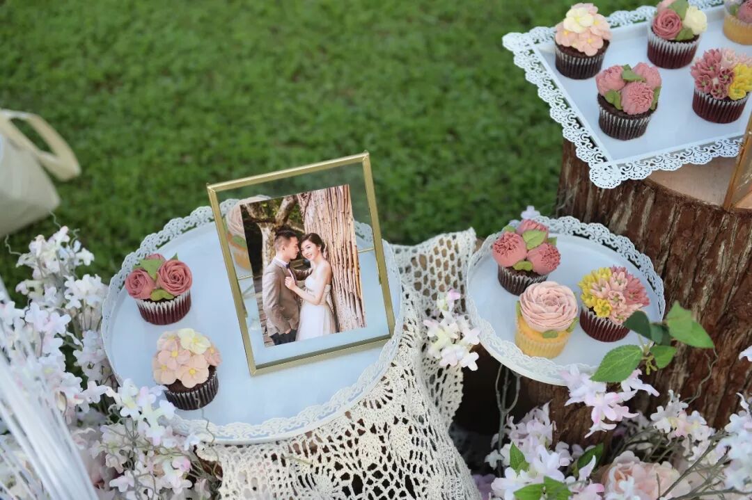 这一块我也从婚庆公司手里承包过来了。主要太有自己的想法了……茶歇点心完全的美艳好吃,且价格相比翻糖点心一套就要六七千还只能看不能吃的价格来说,性价比会高很多。(一块纸杯蛋糕35元,两千元可以搞定)