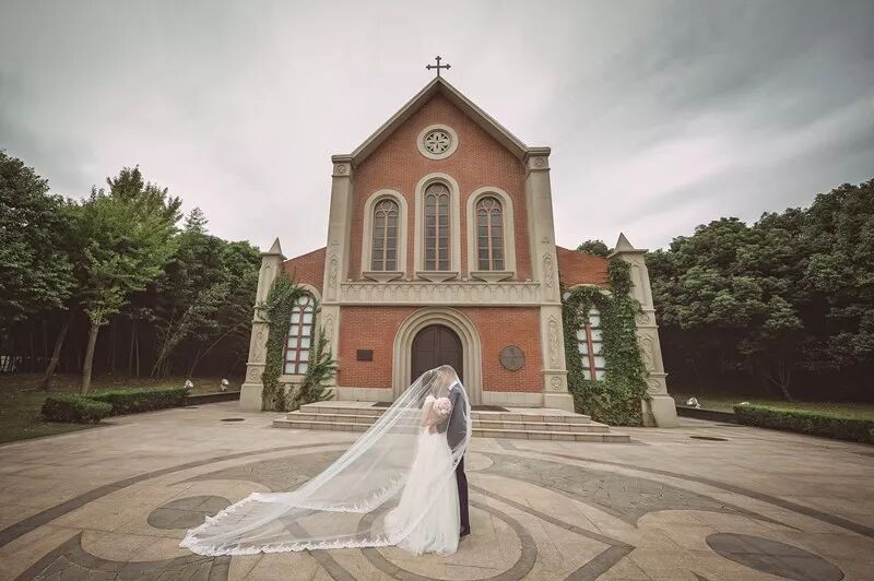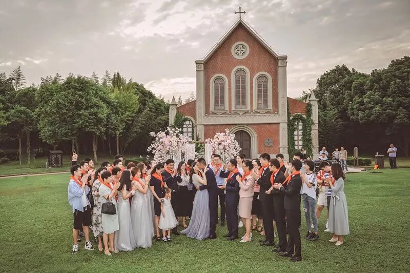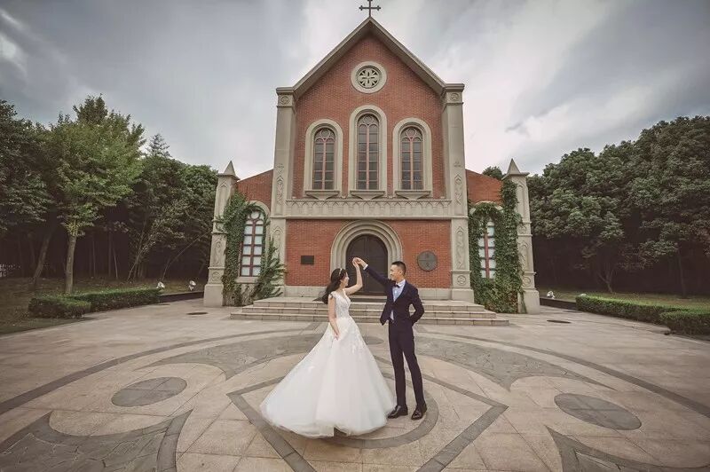 按照个人规划和喜好,协定外景拍摄地点。我们就在酒店偌大的草坪和教堂。