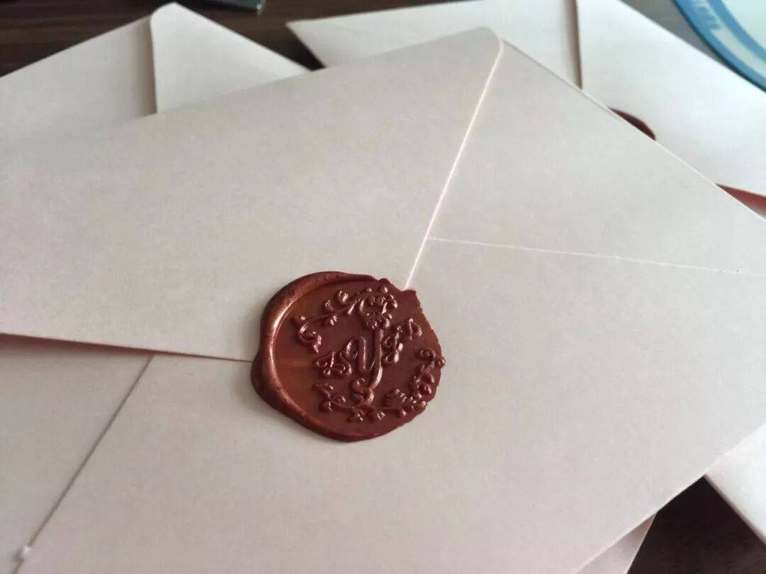 信封上,当然还有心思。我们把logo做成火漆印章,每个信封都有一个独一无二的封口。