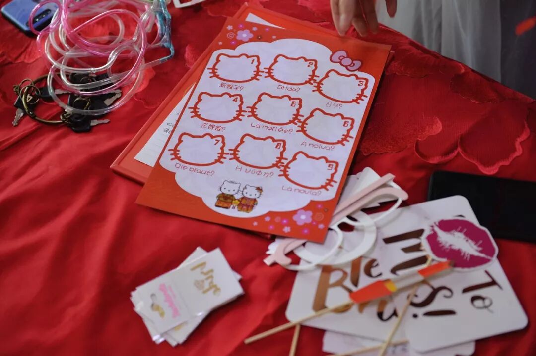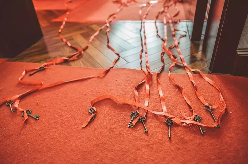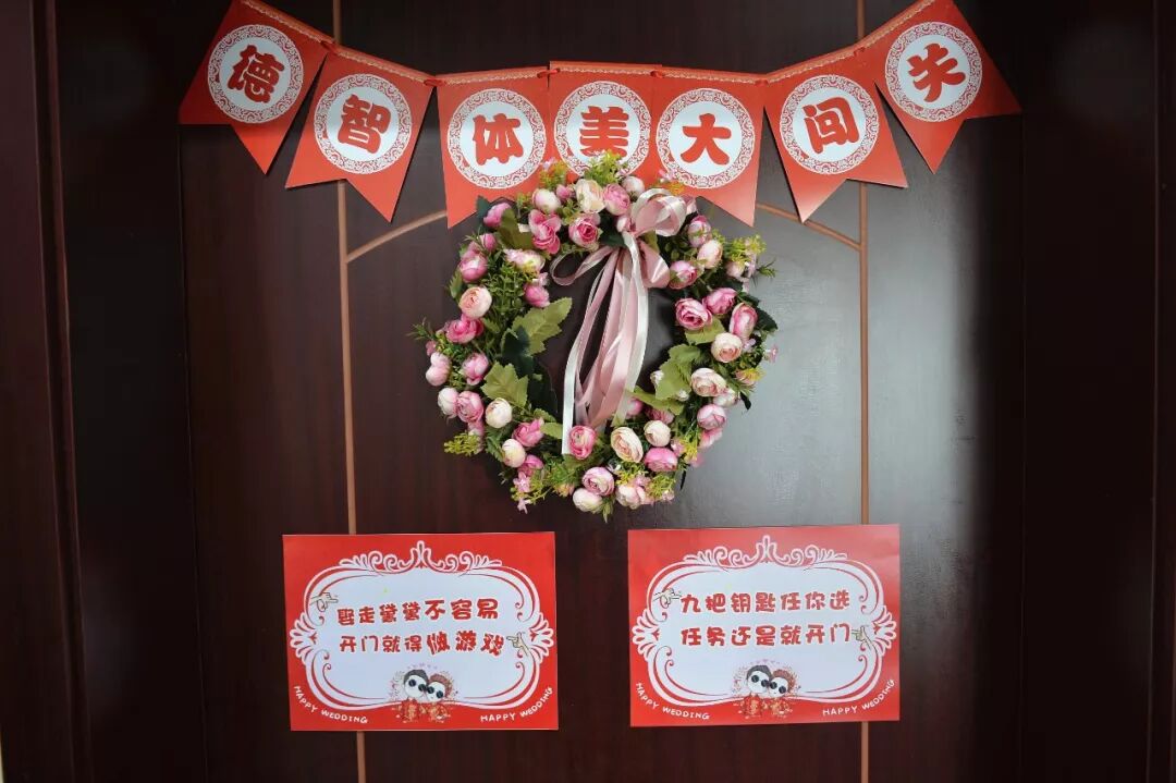 我设定的游戏大多都是考验运气的游戏,(比如九把钥匙连接着九个小任务,其中一把直接开门)先生平时很衰,但是当天运气好的爆棚,第一次就拿到了直接开门的钥匙……吓得伴娘们赶紧集体作弊换任务。