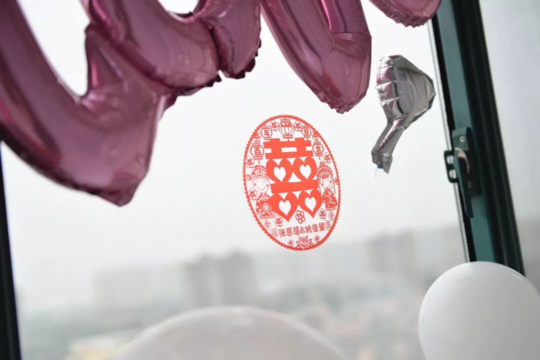 喜字可以定制姓名日期。我也特别做了贴在房门口标语。