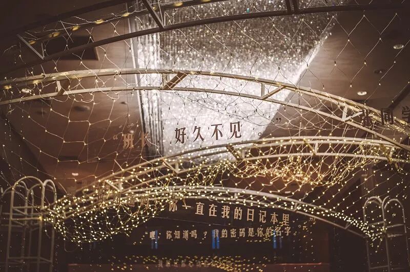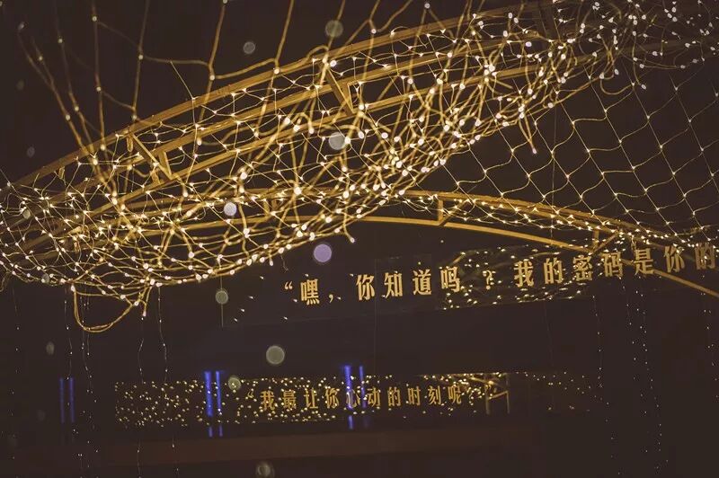 签到台走进去,头上结满星光的网下,是几段对话,有心的客人可以看见我们的时间轨迹。