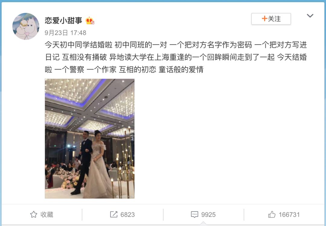 『这次的新娘日记大概甜度有 100 分,之前就看他们的爱情和婚礼登上了热搜,点赞人数有 16 万!