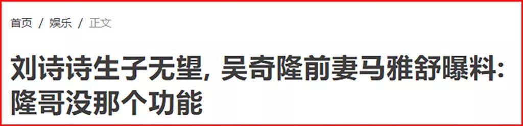 然而在媒体的口中,吴奇隆成为了一位“性无能”的男人。因为有媒体“爆料”,在这结婚的两年多里,吴奇隆与妻子的夫妻生活不超过5次,所以大家纷纷认为离婚原因多在吴奇隆本人。