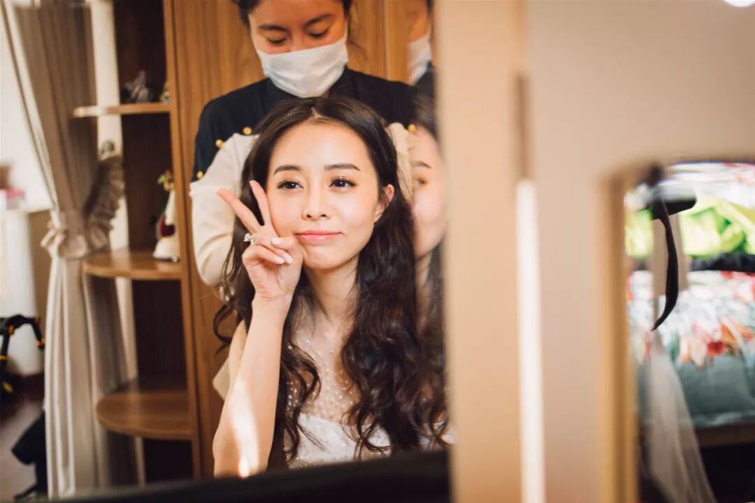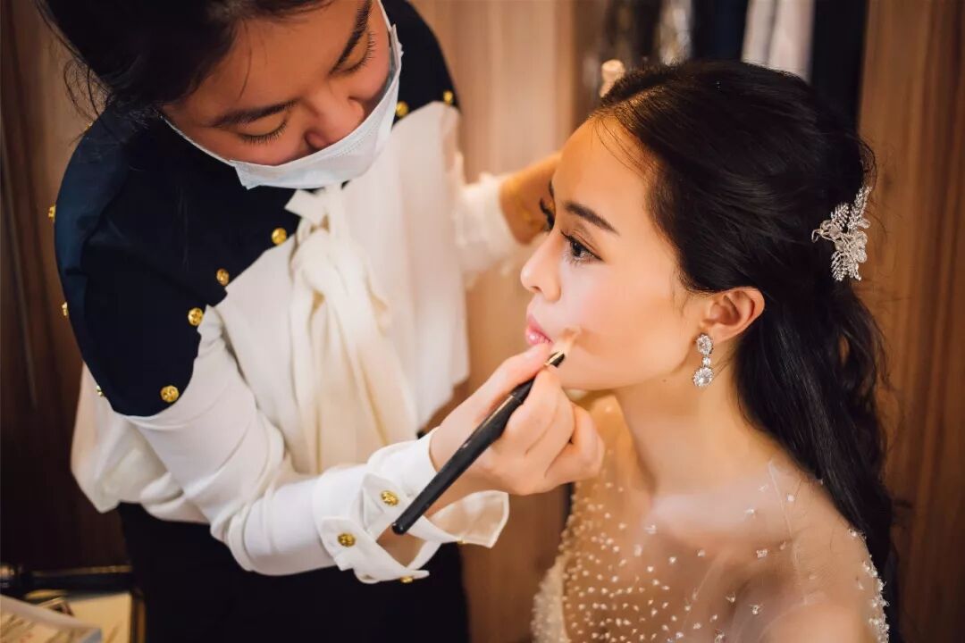 因为店里的每一件礼服都和市面上的不太一样,它对化妆师的审美要求也会很高,所以他们更希望能为新人打造整体造型而不是让新人随便选择一个化妆师。你知道如果礼服美如仙和造型没有做好的话,是多么的毁吗。
