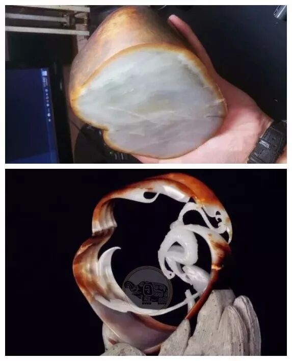 玉石作品:很多因剜脏去绺,而改变作品的原定结构,还要使其构造合理,煞费玉雕者之苦心(例如下面这件作品)