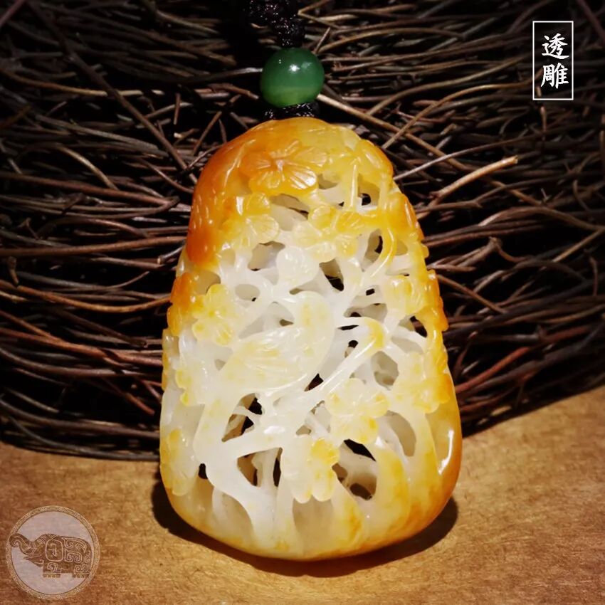 因其工艺复杂,制作难度较大,采取钻孔穿透碾磨法,故镂空处:上下层的线条错落复杂,在抛光时,最为费时费力,然而,透雕艺术效果最佳