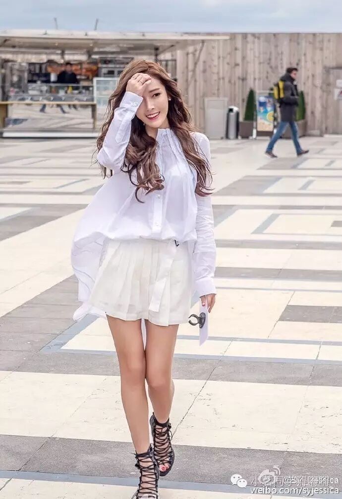姐姐也喜欢穿~郑氏姐妹私下穿衣风格还是很接近的。白衬衫配A字百褶短裙,绑带高跟鞋,西卡欧尼真是美一脸。