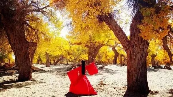 秋天是额济纳最好的日子了,胡杨林的叶子变得金黄火红,宛若沙漠中一片熊熊燃烧的海。先来一睹为快吧: