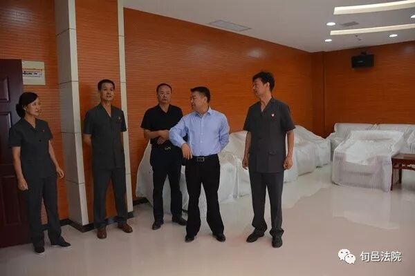 来到新建审判大楼,王旭县长一行边走边看边了解,详细查看审判、办公区域和周围环境,听取建设推进情况汇报。王旭县长指出,县法院的新建审判大楼建设为旬邑的法治建设树立了新形象,有利于改善人民群众的诉讼环境,有利于提升人民法院的司法服务水平。