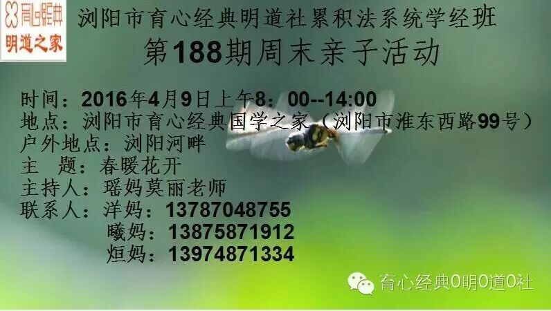 春暖花开——记浏阳育心经典明道之家第188期亲子学经活动