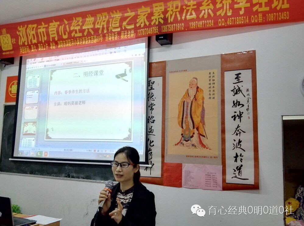 爻妈身兼多职,又是主持又是主持,声音都哑了,但是大家都不想错过让瑶妈分享的机会,明经课在大家的期待中开始了,爻妈从春季的衣、食、住、行和每天必做的五件事告诉我们要如何预防疾病,如何更好遵守生活规律,让每个育心家人都成为家庭保健医生,为健康保驾护航。感恩瑶妈的付出和大爱之心。