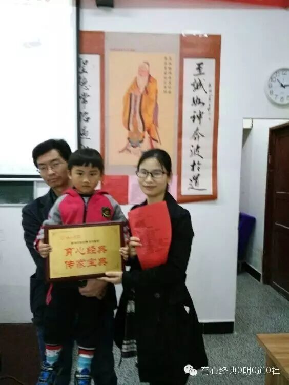 因为今天参加活动除了铛铛妈妈一家,还有上月请育心全套教材的睿妈家庭,在这个特别的日子里,将我们的“育心经典,传家宝典”的牌匾授予睿妈家庭。
