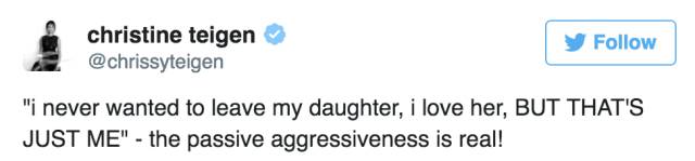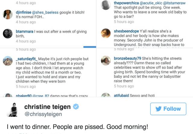 不过Chrissy也不是好惹的,一句“That’s just ME”就KO了网友们的批评…▼