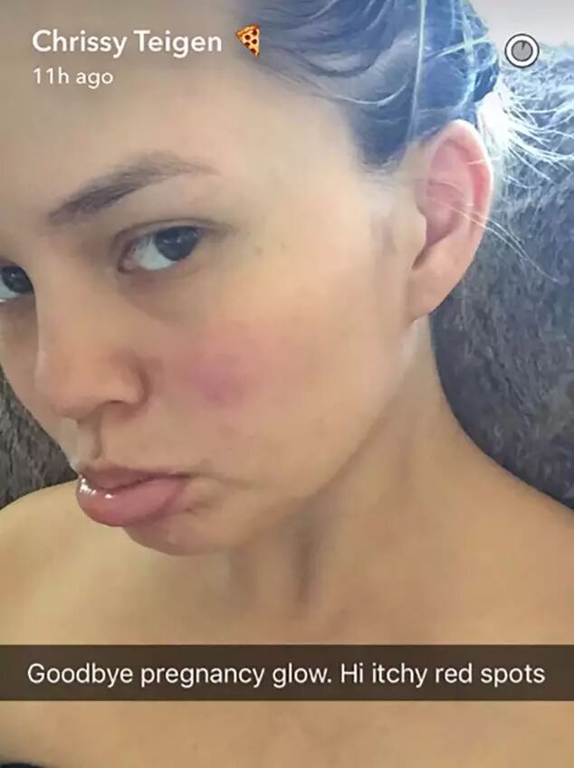 虽然日日很开心,不过刚刚生完孩子不久的传奇嫂Chrissy Teigen就没那么开心了,今天她就在snapchat上面上传一张自己的素颜照,表示自己的“孕妇光辉”消失了…▼