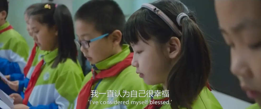 她背对着妈妈,面朝着玻璃窗喃喃自语,玻璃上映出了她疲惫而孤独的脸庞,城市灯光闪烁,却看着无比凄凉。