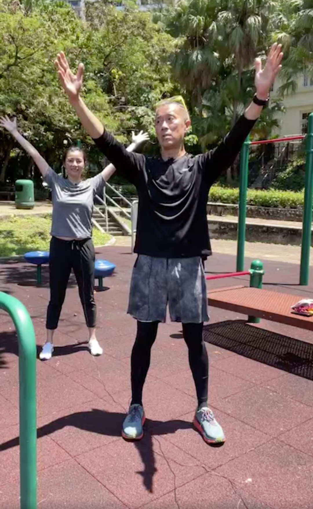 47岁蒙嘉慧(Yoyo)爱上拉筋运动,与好友兼拉筋专家K Sir日前进行网上直播,示范连串拉筋动作。蒙嘉慧在直播中自嘲自己身形突变,穿上运动装的她,确实身型发福不少,示范动作期间露出小肚腩,蒙嘉慧不时用手址衫,笑说要求将片段删掉,看得出她对自己身型变化其实也并不太在意。