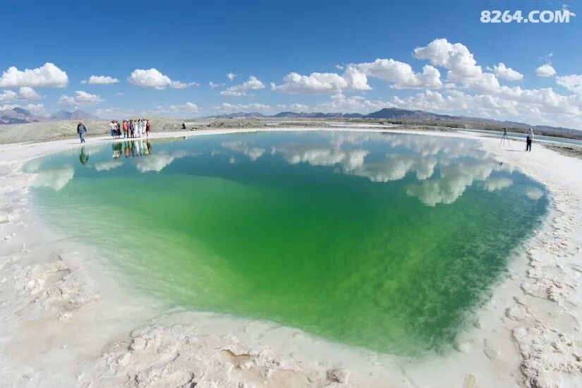 网红打卡圣地翡翠湖,位于青海省海西蒙古族藏族自治州大柴旦镇境内,站在湖边,宛若镜面般的湖面倒影着蓝天白云和皑皑雪峰,犹如仙境。大大小小的卤池内,湖水由于矿物元素含量的不同,呈现出绿、蓝、黄、褐等色彩,在蓝天白云的映衬下,犹如一块块美玉散落在人间,也有人称它是“天使的眼泪”。