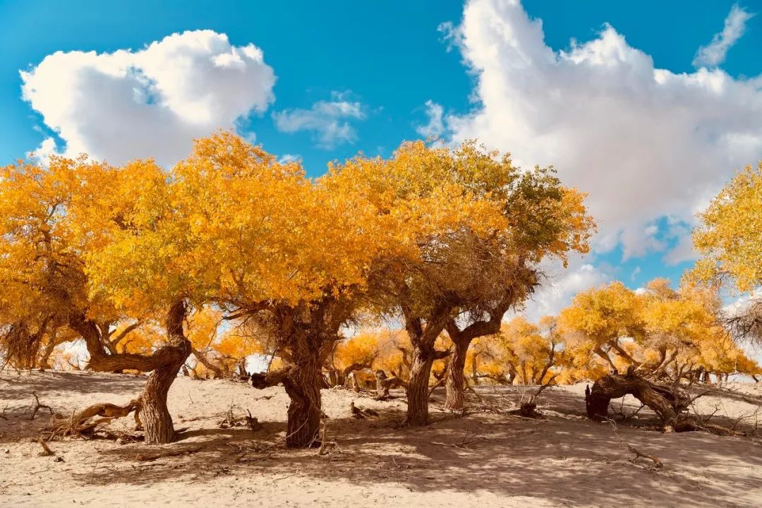 一生中一定要去看一次额济纳胡杨林的秋色,它美的惊艳三千年的时光,人们不知道为什么它在沙漠里可以这么的美,但当胡杨林进入秋季,天地都会为之变色。