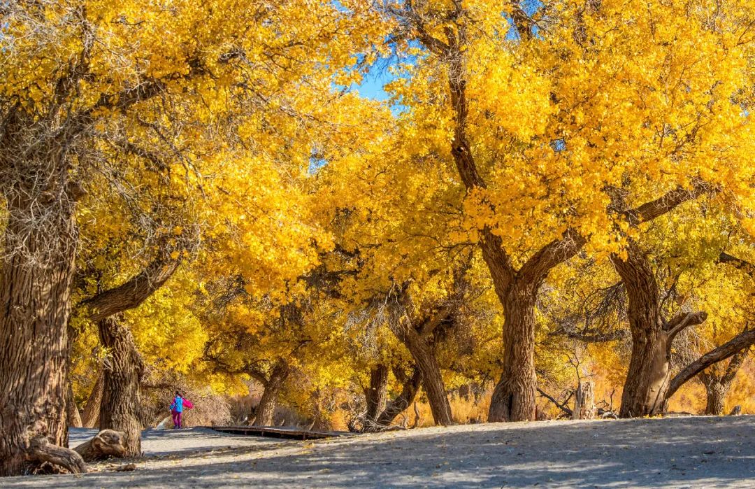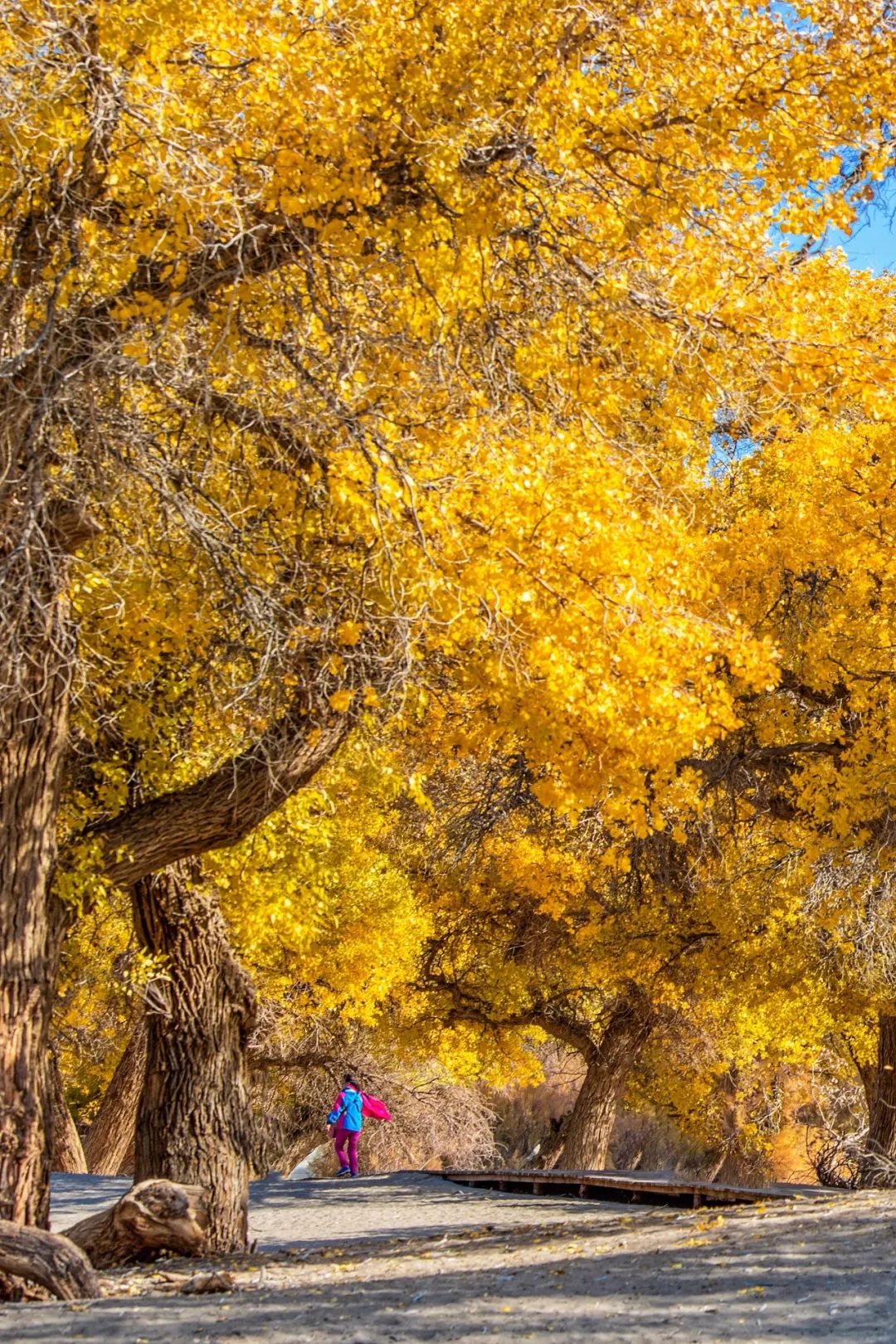 额济纳位于内蒙古自治区最西端,是世界仅存的三大胡杨林区之一,连绵数十公里的金色海洋,在秋季狠狠地向你绽放。走到哪里都如置身油画,任何一个快门都是一张明信片!!