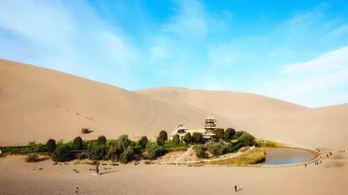 天下名山都有壮丽日出景观,唯有鸣沙山的日出别具一格,早起可欣赏日出透过清晨的薄雾缓缓升起,喷射而出。将大地映得一片光明,这对大漠戈壁中的孪生姐妹,千百年来以山泉共处、沙水共生的沙漠奇观著称于世,有“月泉晓澈”“塞外一绝”的美誉。“山以灵而故鸣,水以神而益秀”。游人至此,都会驰怀神往,遐思万千,确有“鸣沙山怡性,月牙泉洗心”之感。